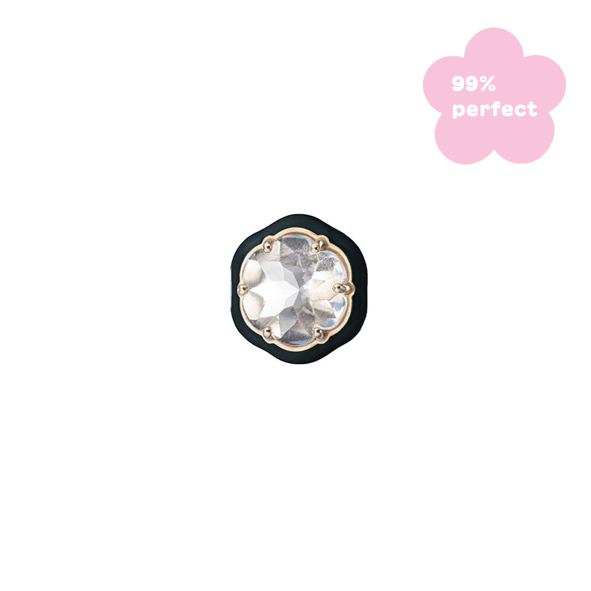 9kt yellow gold, silver, Teal enamel and Flower Cut Rock Crystals