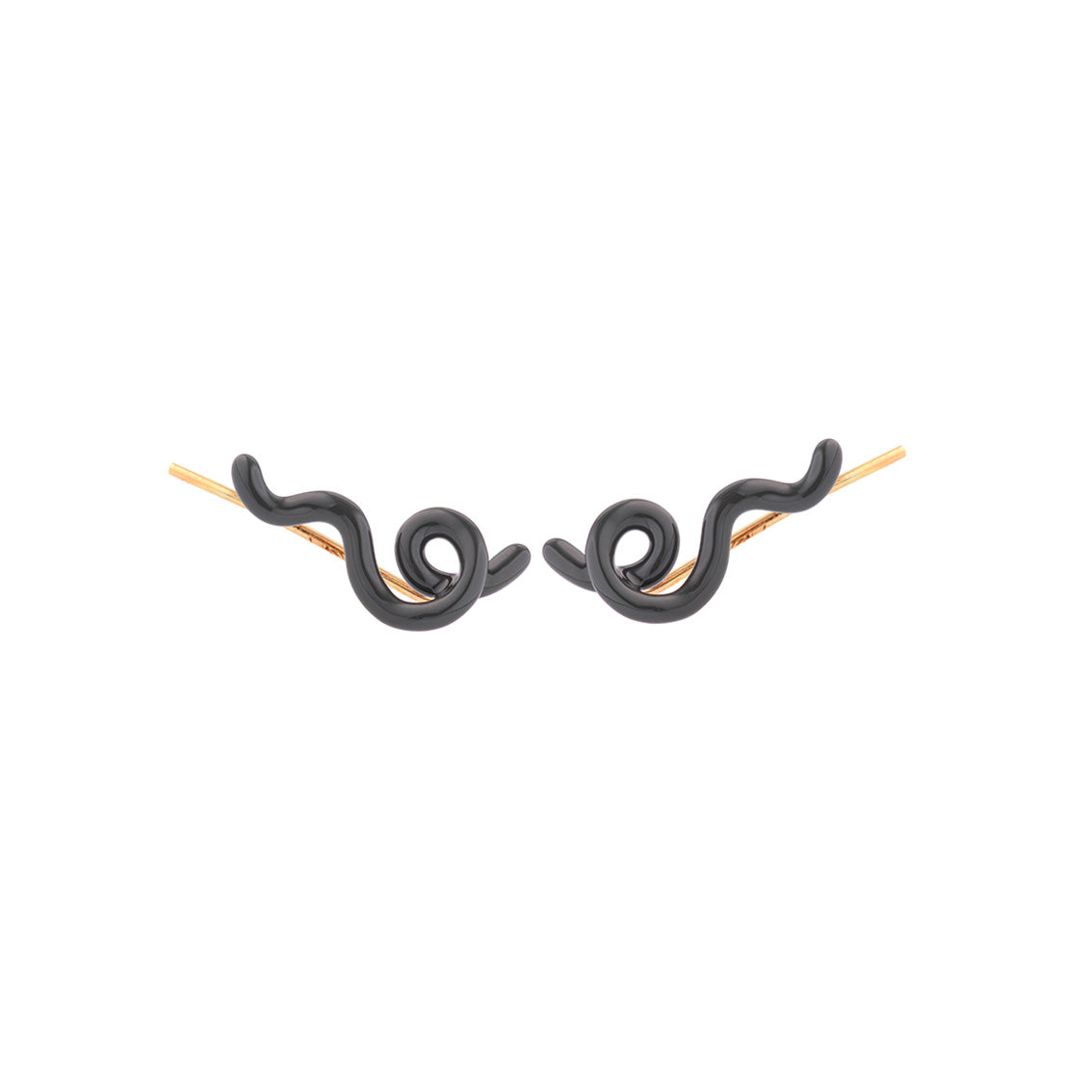 Short wave earrings in 9kt yellow gold and silver with wisteria enamel.