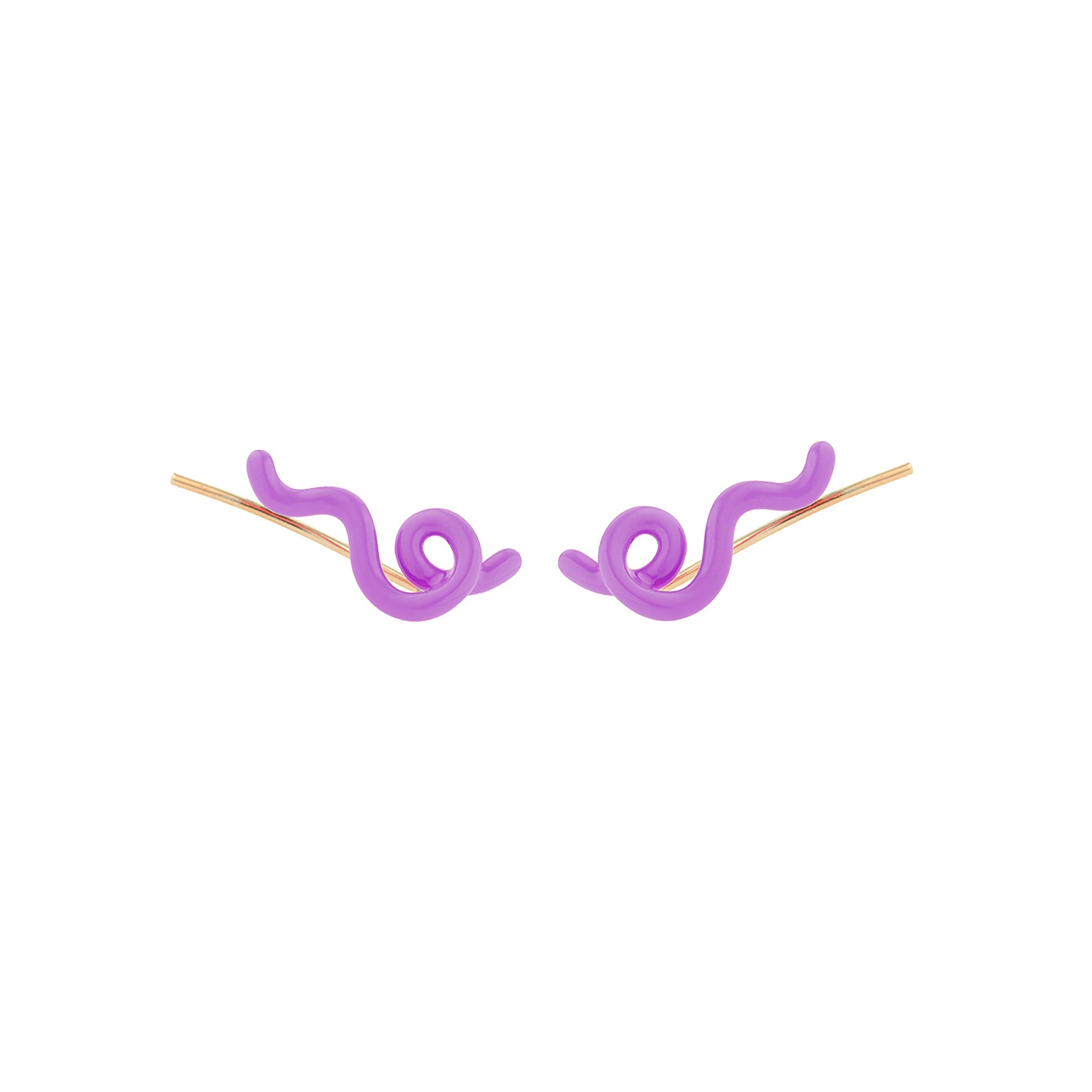Short wave earrings in 9kt yellow gold and silver with wisteria enamel.