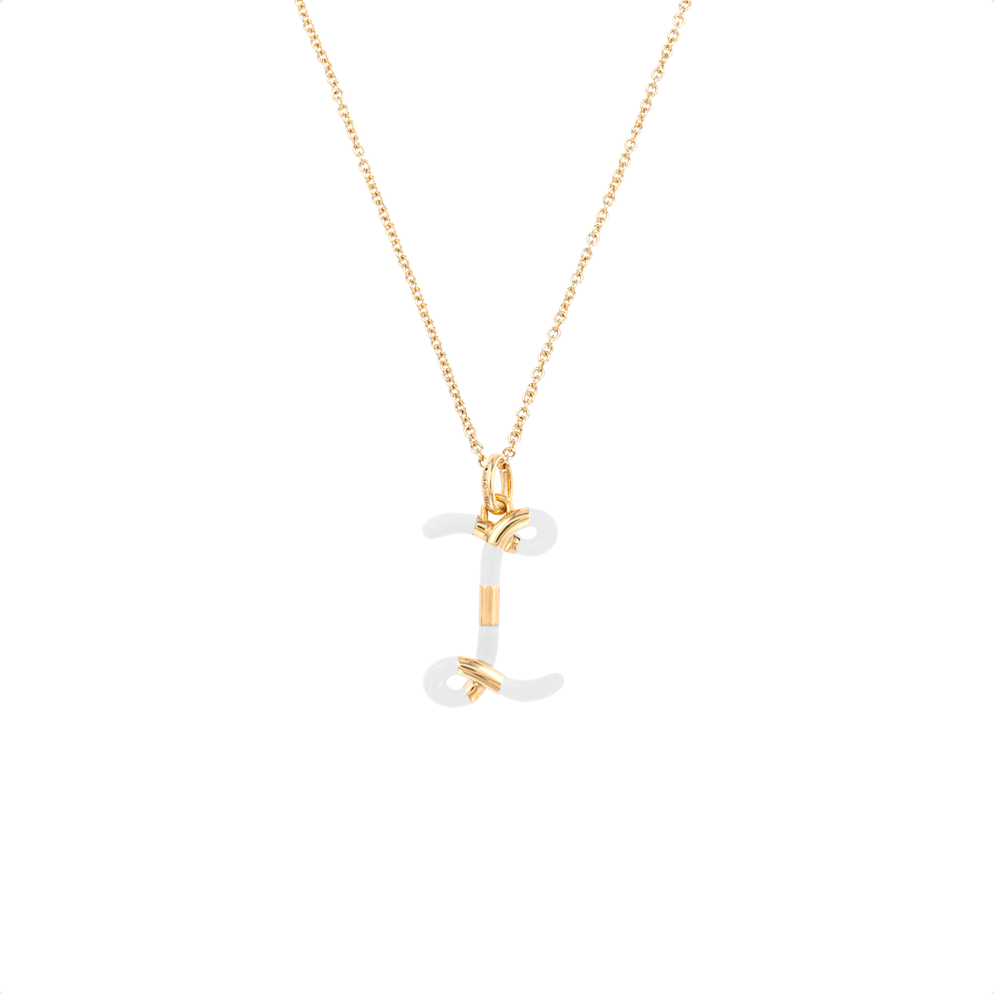 I Letter Necklace in 9kt yellow gold with white enamel.