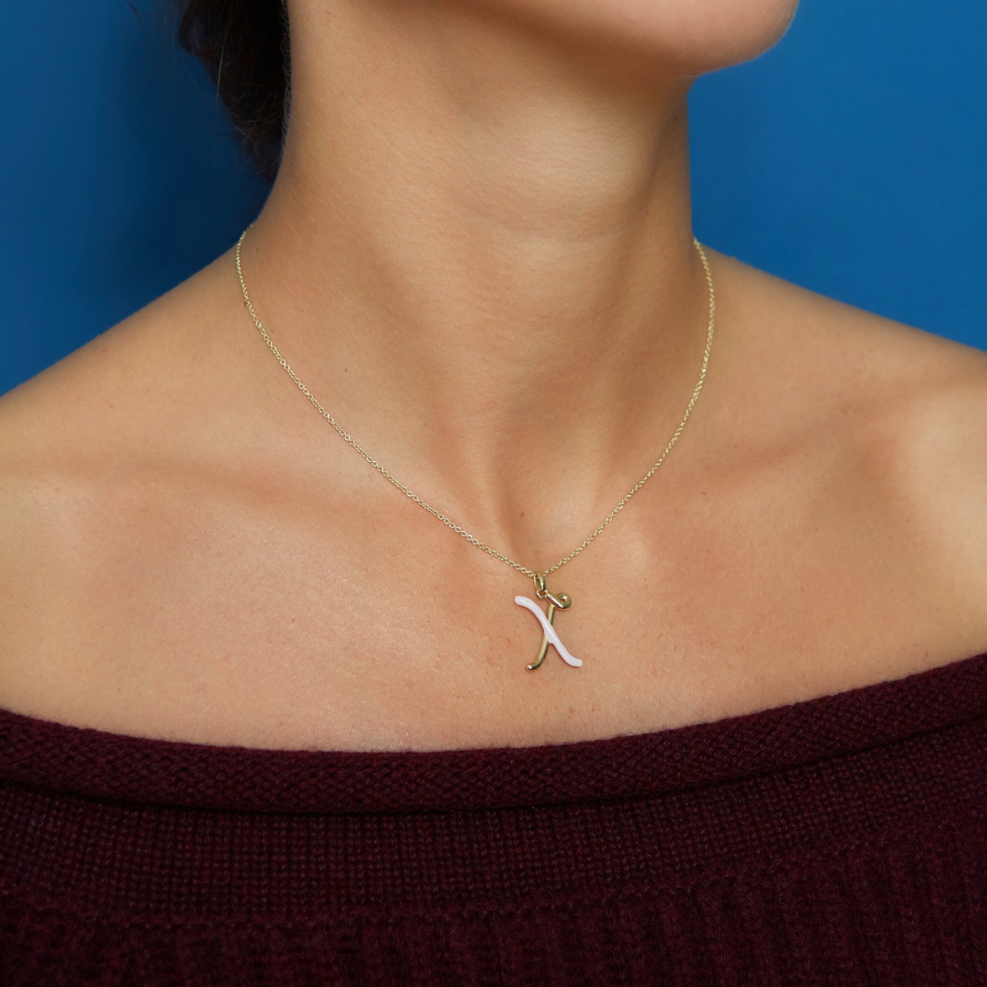 X Letter Necklace in 9kt yellow gold with white enamel.