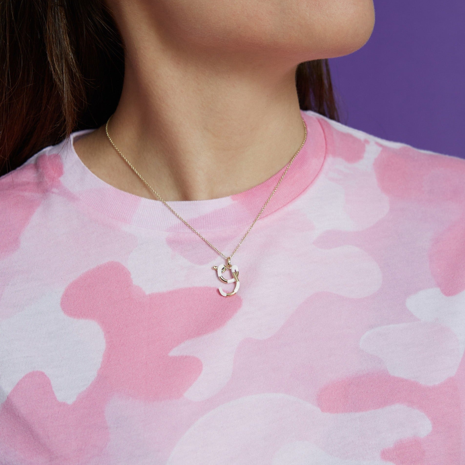 Y Letter Necklace in 9kt yellow gold with white enamel.