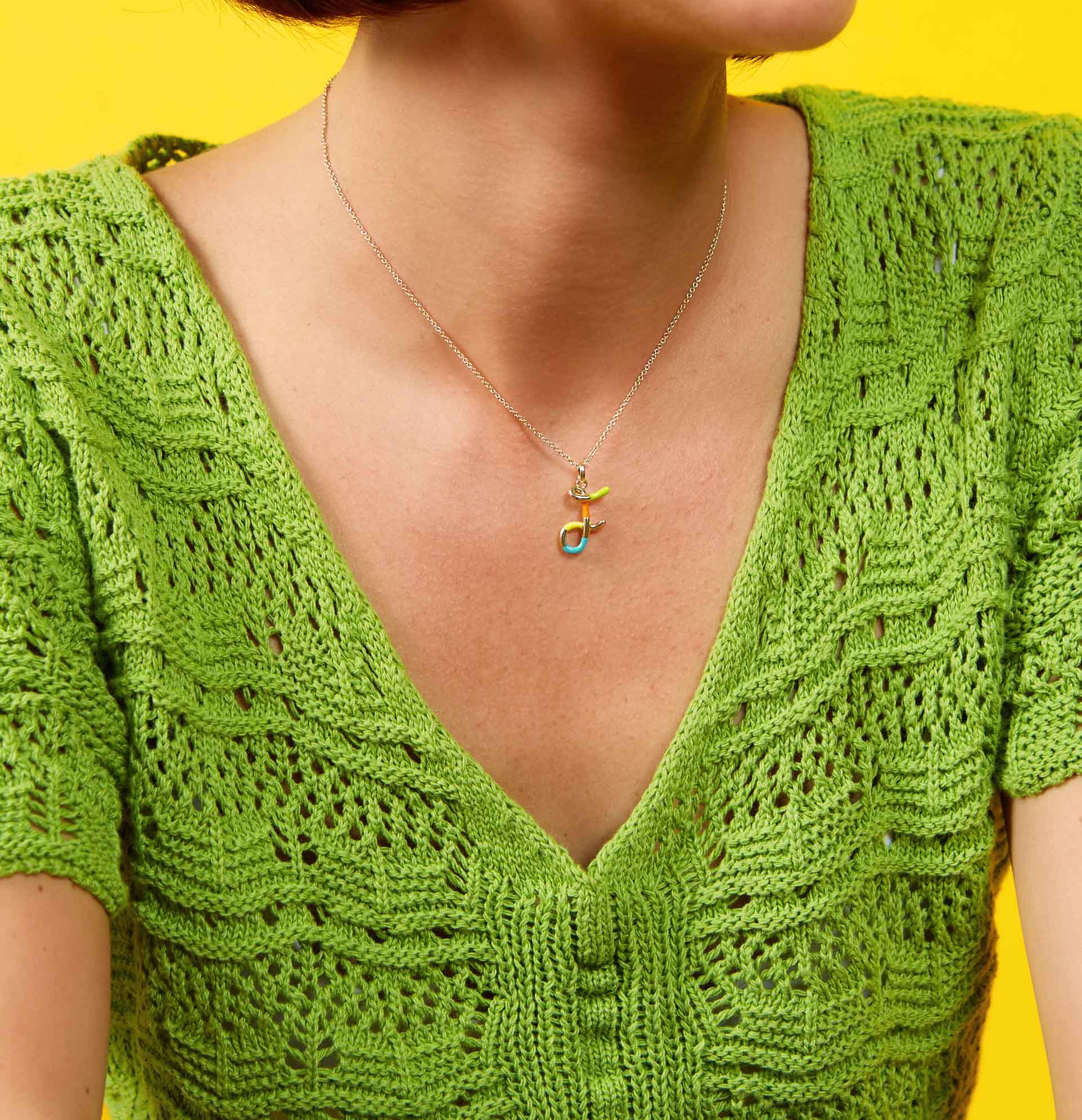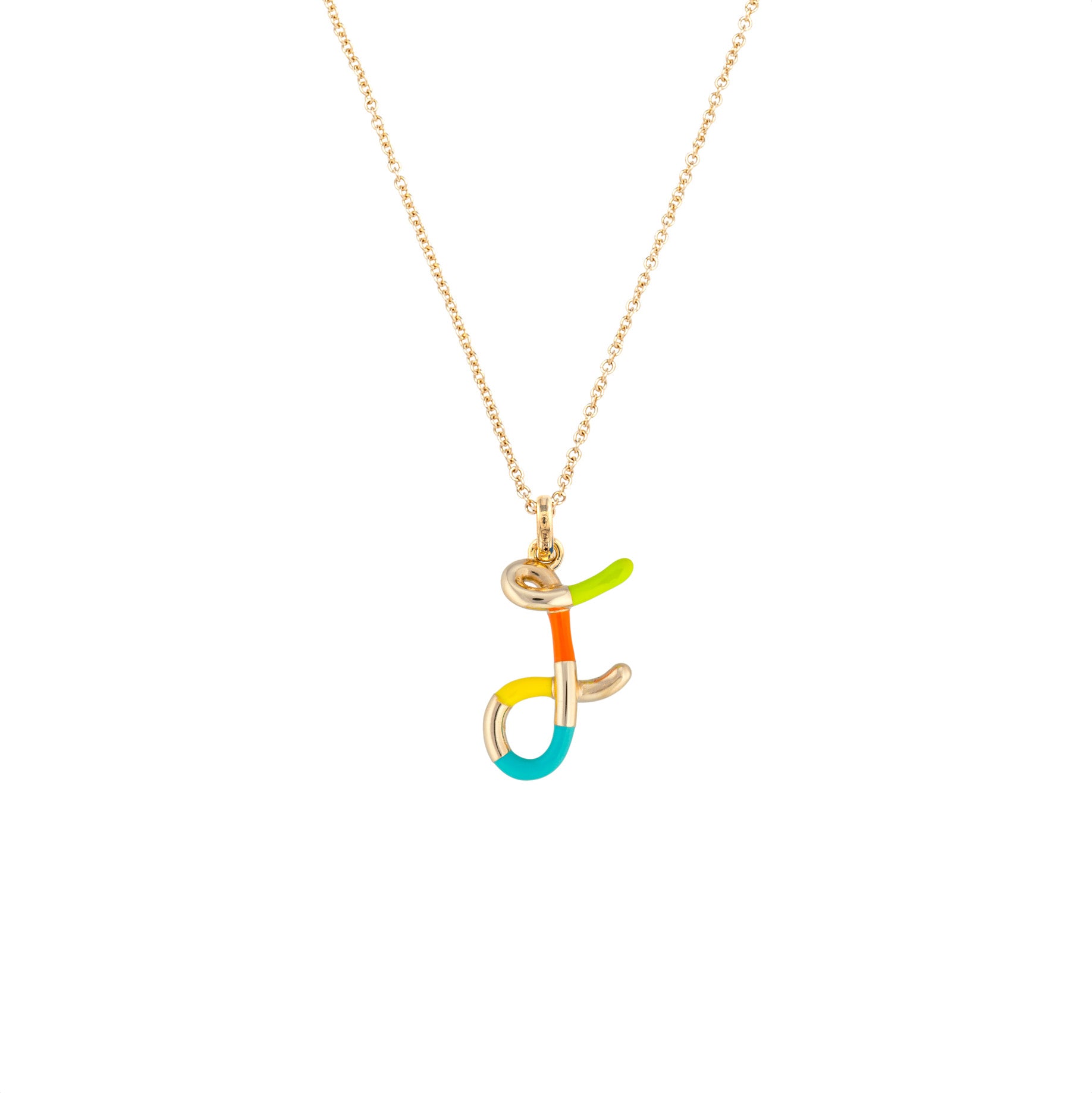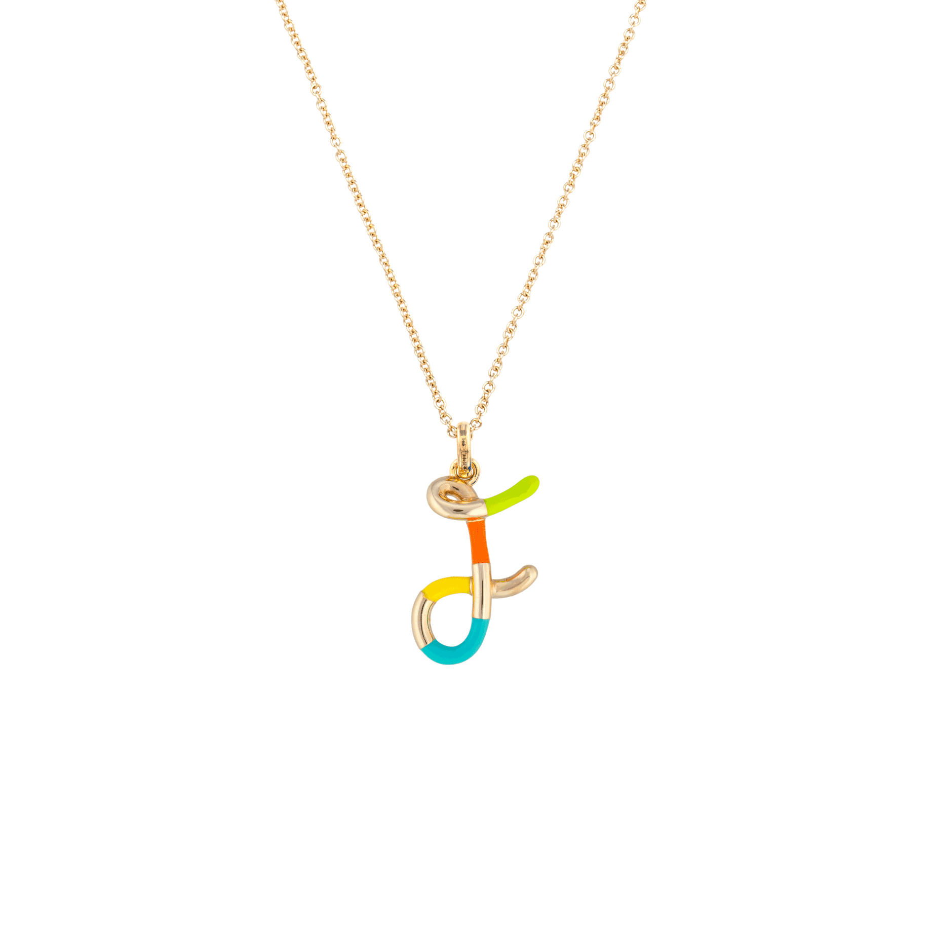 F Letter Necklace in 9kt yellow gold with snake enamel available in: