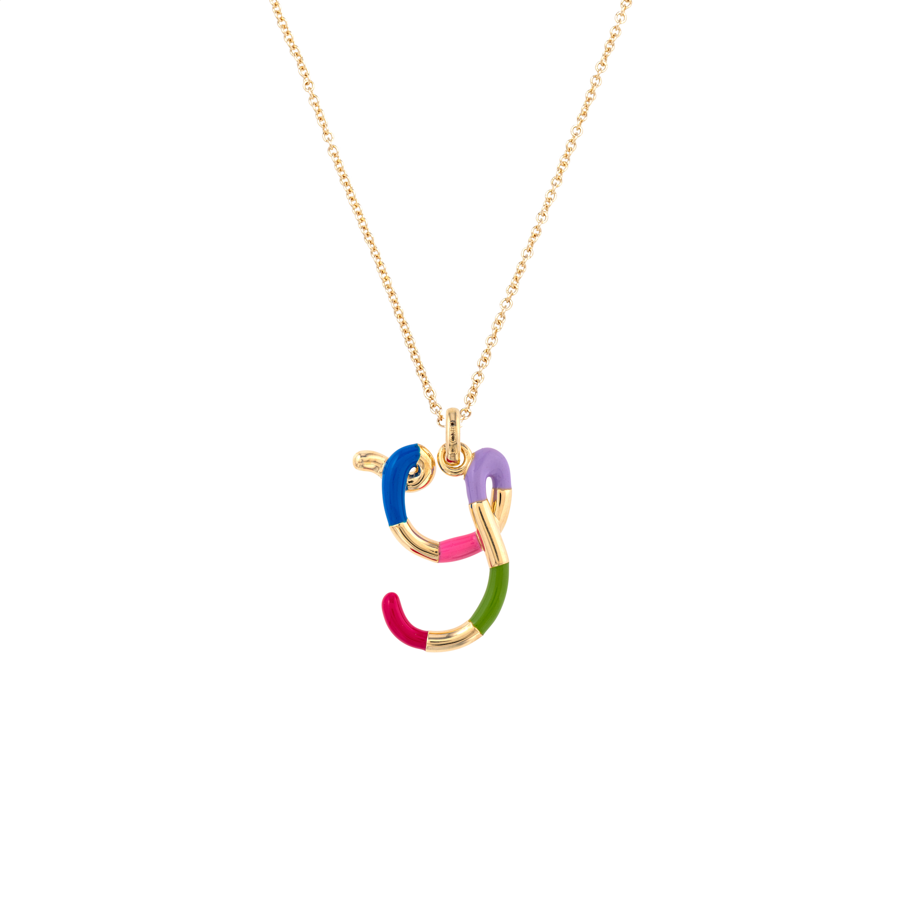 Y Letter Necklace in 9 kt yellow gold letter with snake enamel available in: